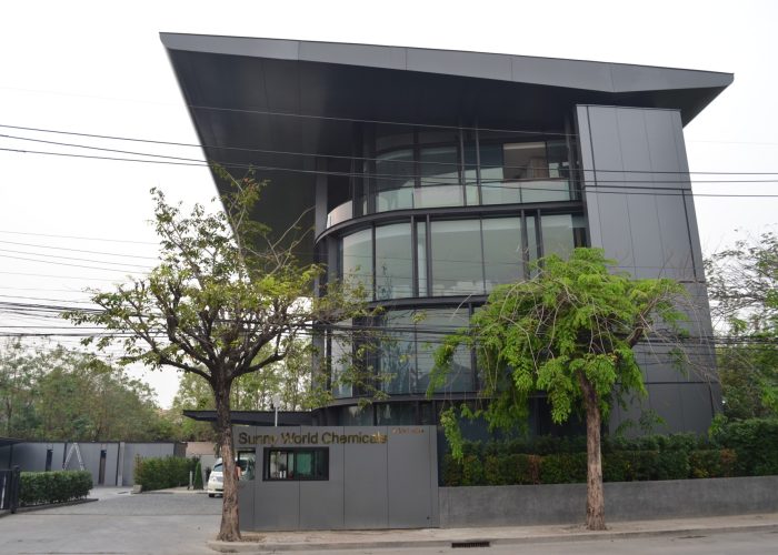 อาคารสำนักงาน Sunny World Chemicals ที่ถนนสุคนธสวัสดิ์ ที่ได้รับการวางฮวงจุ้ยร่วมกับการออกแบบสถาปัตยกรรมได้อย่างลงตัว ก่อให้เกิดทั้งความเจริญรุ่งเรืองและความสวยงาม