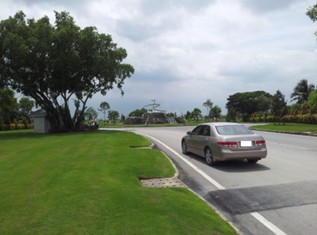 การปรับปรุงฮวงจุ้ยที่ อ.ตะวัน เริ่มแนะนำก็ได้แก่บริเวณทางเข้าของโครงการ ที่วางอยู่ในแนวถนนรองที่ขนานกับเส้นรังสิต-นครนายก ซึ่งถือว่าไม่ไกลกันจนเกินไปนักสามารถรับกระแสพลังได้พอสมควร แต่การออกแบบตำแหน่งน้ำพุเดิมของโครงการนั้นวางในตำแหน่งที่ลึกเกินไป ยังไม่สามารถดึงเอาพลังดีจากถนนรังสิต-นครนายก เข้ามาเสริมในโครงการได้ นอกจากนั้นน้ำพุเดิมยังเป็นลักษณะที่แนวกระแสน้ำนั้นไหลออก และ Slope บริเวณปากทางเข้าโครงการนั้นค่อนข้างเทออกแบบลาดชัน เมื่อ อ.ตะวัน ได้เห็นจึงให้ทางเจ้าของโครงการปรับปรุงในส่วนของการตั้งตำแหน่งน้ำพุหน้าโครงการ “ใหม่” เพื่อให้มีฮวงจุ้ยที่ถูกต้องเป็นมงคลมากกว่าเดิม