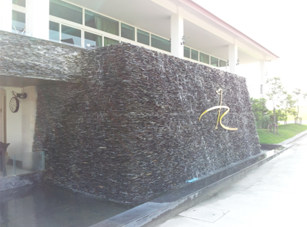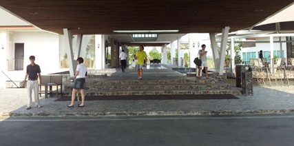 ทางเข้าโครงการเดิมยังวางน้ำพุได้ไม่ตรงตำแหน่งที่ดีที่สุด ลักษณะของน้ำเทออกมากเกินไป และทางเข้าโครงการเป็น Slope ไหลออกมากเกินไป
